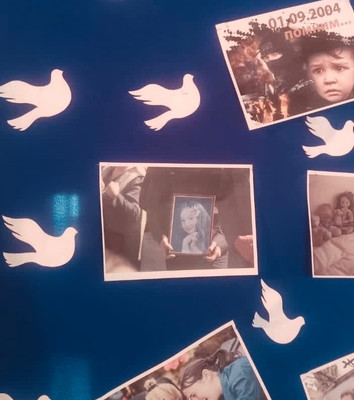 Ребята возложили цветы к Стене памяти жертв Беслана, украсили ее белыми голубями, символом чистоты и мира.